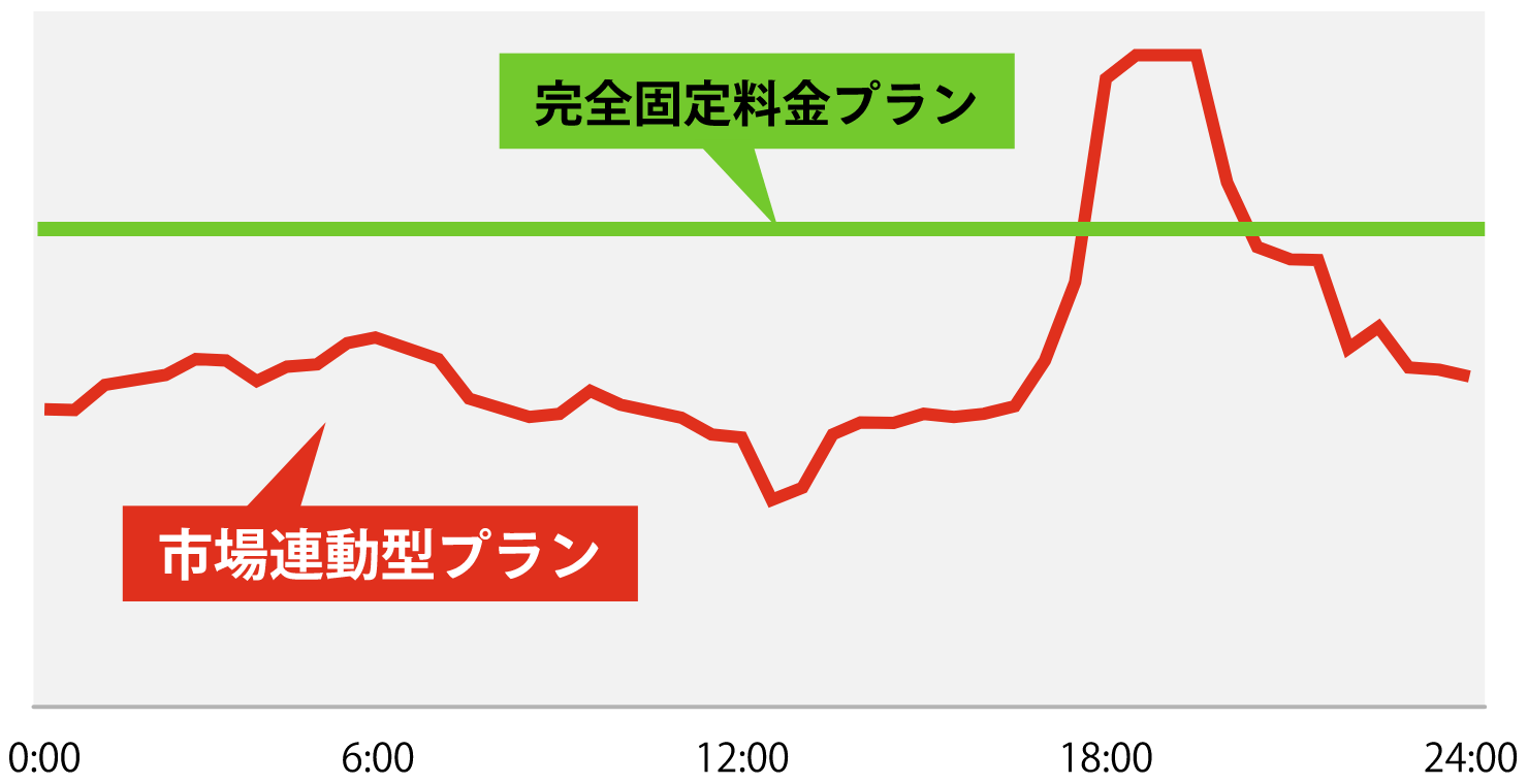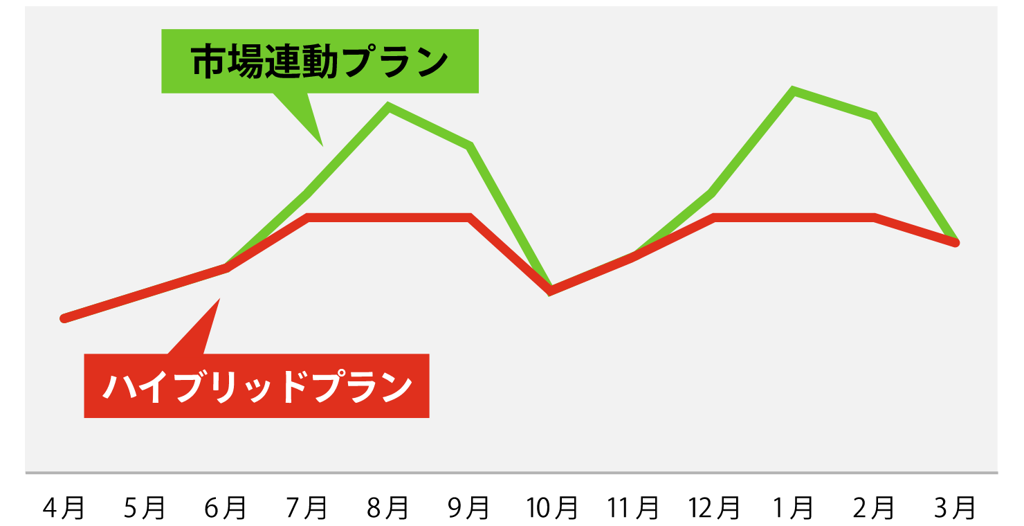 市場価格が高い時期(主に夏と冬)は固定料金で、安い時期は市場連動価格で、ご提供するので、全体的に費用を抑えることが可能です。
